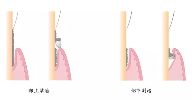 当牙龈下存在的牙结石,或有牙槽骨吸收迹象时,常规洁牙往往无法清除牙龈下的结石,此时需要进行牙周刮治了。